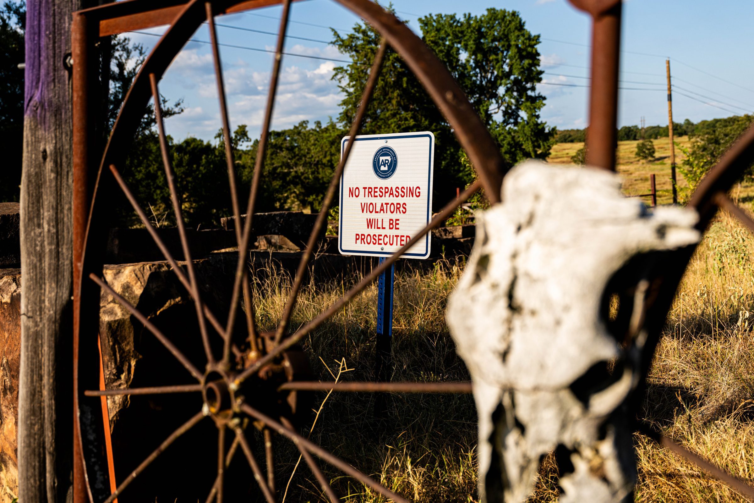 I visited Franklin County in February while the legislature was in session and lawmakers had yet to vote on funding for the prison. After lunch at a barbecue joint where Don’s picture hung above the cash register—a tribute to his speech at the town hall, the owner told me—his daughter, McChristian, drove me to the prison site. A weathered wooden arch flanked by piles of sandstone slabs marked the entrance. Signs warning “NO TRESPASSING VIOLATORS WILL BE PROSECUTED” stood in the ground along the property line.