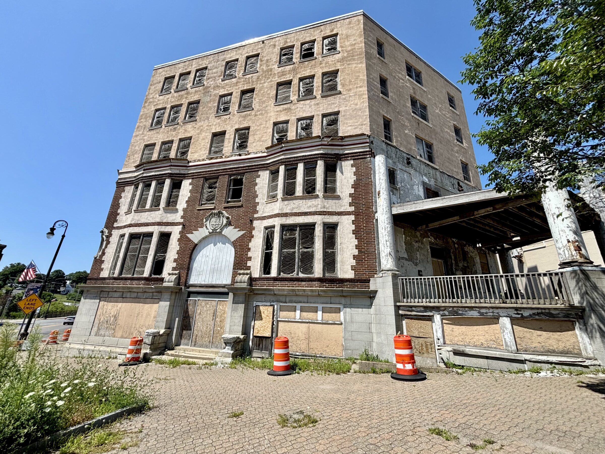 In the village’s business district, which in the spring was awarded $10 million from the state for revitalization, the sidewalks were empty. At least a dozen storefronts sat vacant, with signs advertising businesses that once operated inside still painted on the glass windows. A stately Victorian building on the corner that was once home to the Flanagan Hotel was patched up with plywood boards, and glass was punched out of its windows; the town police now post warnings about trespassing inside the hotel, where Thomas Edison and Alexander Graham Bell once stayed, saying one misstep on the old decaying floor could be deadly.