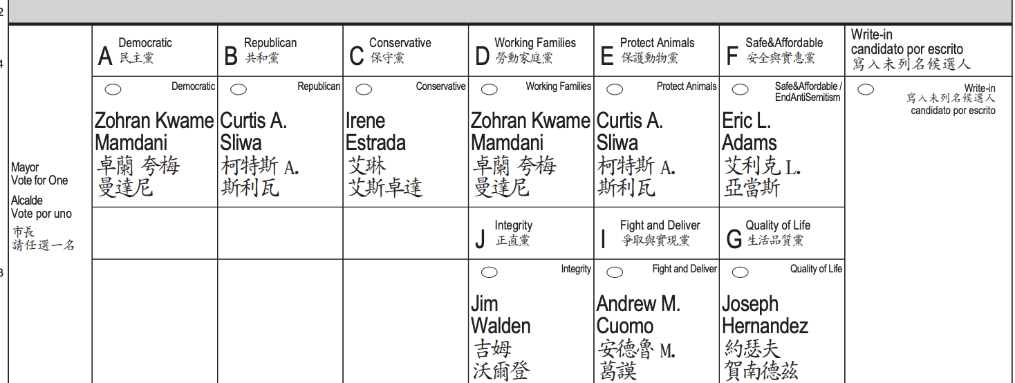 Mamdani, for instance, will appear twice on November’s mayoral ballot, shown below: once as the Democratic nominee, and once as the Working Families Party nominee.